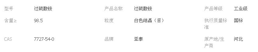 1、聚合:過硫酸銨是乳膠或丙烯酸單體聚合液、醋酸乙烯、氯乙烯等產(chǎn)品的引發(fā)劑,