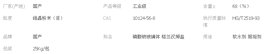 六偏磷酸鈉作為軟水劑,如用在染整上,起到軟水作用;還作為阻垢劑,廣泛應用于EDI(樹脂電滲析)、 RO(反滲透)、 NF(納濾)等水處理行業(yè)。